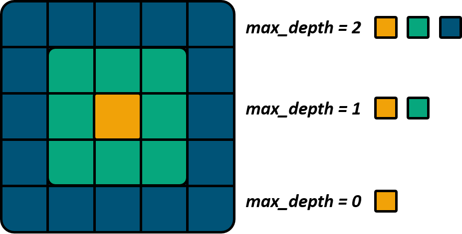 The maximum depth accepted by the algorithm to find the catchment outlet. A max_depth of 1 means that the algorithm will search among the 2-length combinations in (